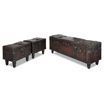 Deze opberg banken set bestaat uit een lange opbergbank en 2 hockers.