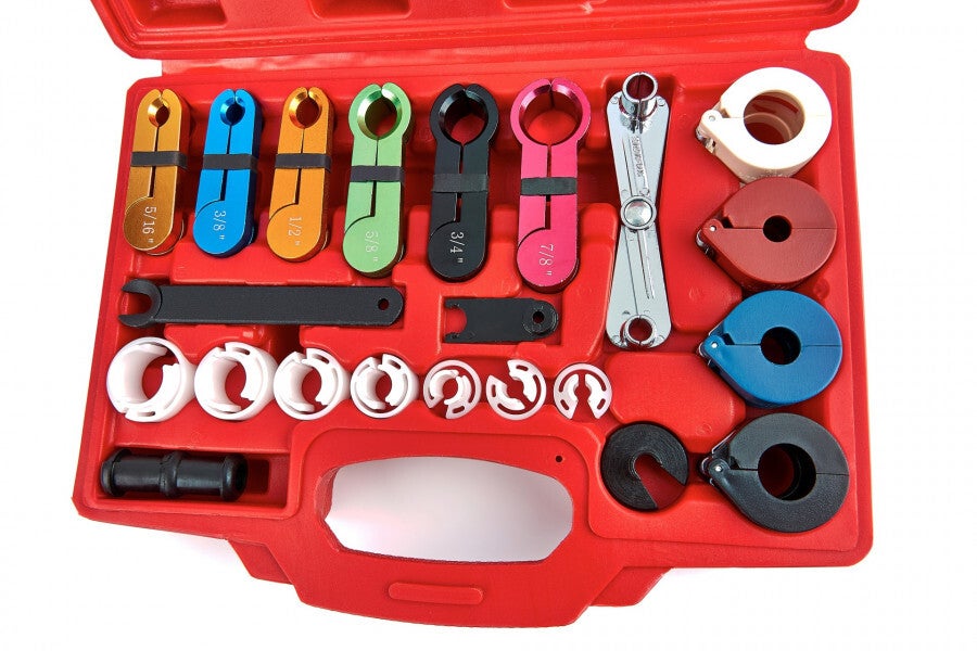 Met deze set kunt u probleemloos aircoleidingen, brandstofleidingen en olieleidingen los maken en vastzetten.