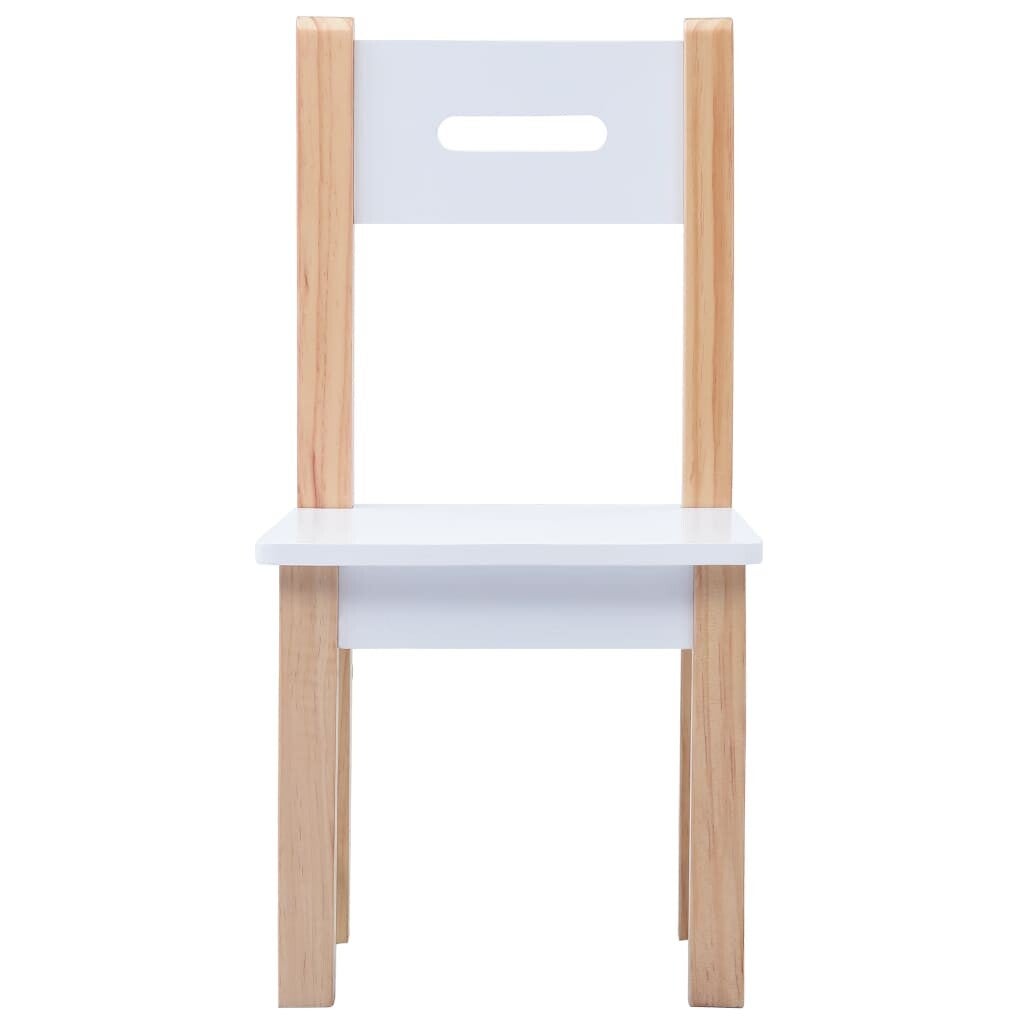 Deze tafel met 2 stoelen is gemaakt van stevig MDF en grenenhout met een verfafwerking.