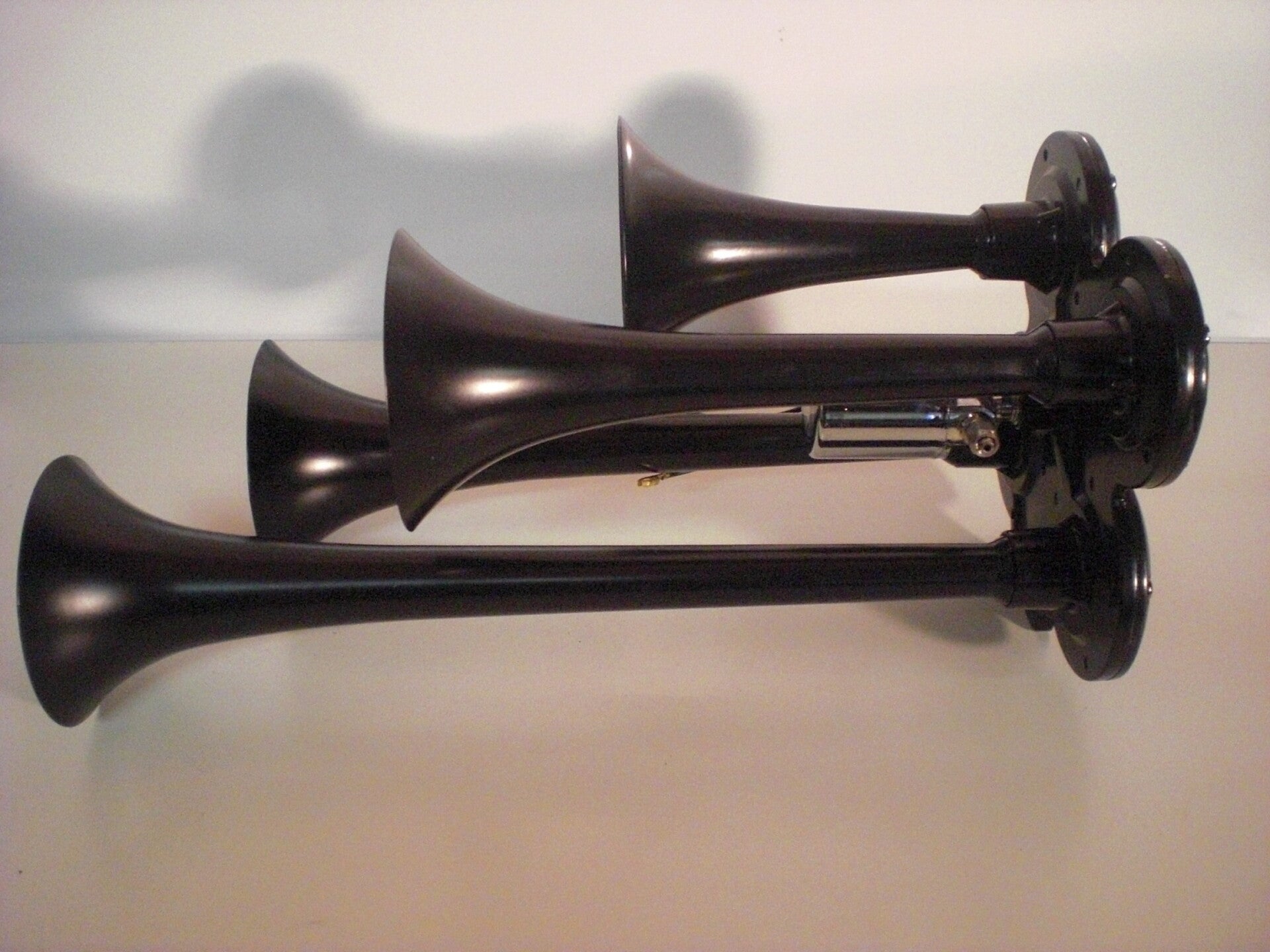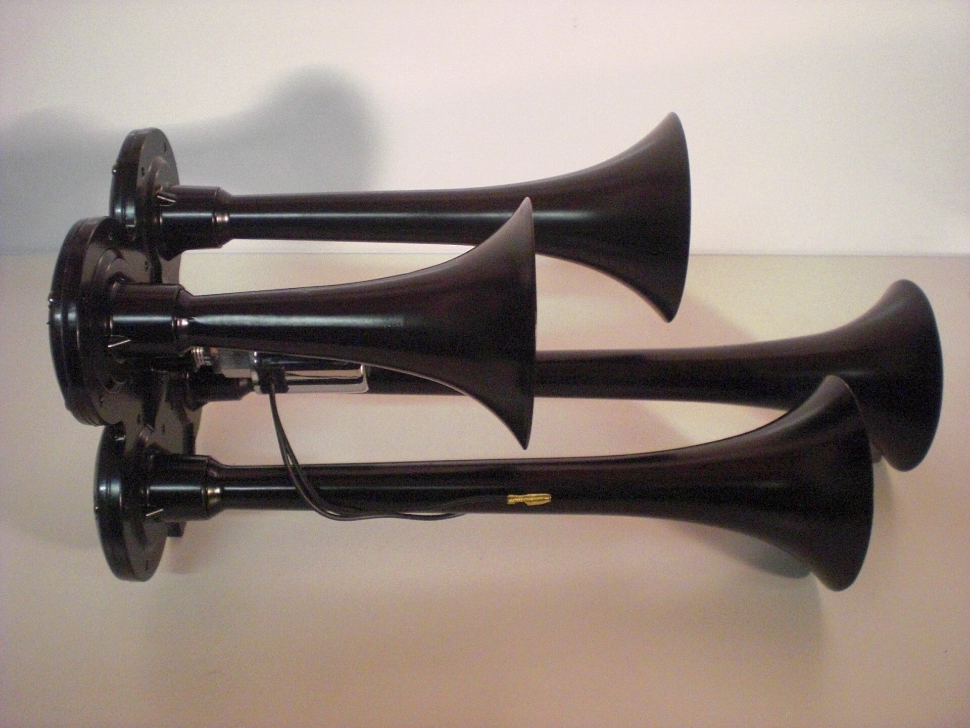 De elektrische Treinhoornset bevat 4 trompetluchthoorns, een magneetventiel, een tank van 0,8 gallon, een compressor en pijpen.