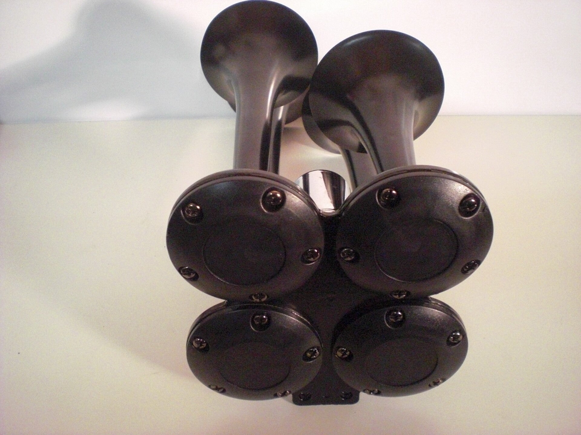 De Treinhoornset voor vrachtwagens is gemaakt van een zware zinklegering en staal met roestwerende coating.